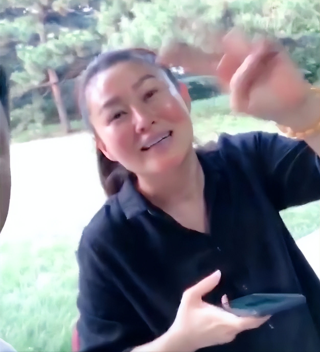 视频里穿着朴素、未施粉黛的她看起来跟寻常大妈没什么区别。
